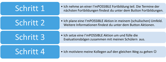 I'mPOSSIBLE wurde für Lehrkräfte entwickelt, um junge Lernende im Alter von 6-18 Jahren zu begeistern. Es bietet eine Reihe von leicht umzusetzenden Unterrichtseinheiten, die den Lernenden die paralympischen Werte, Para-Sportarten und inspirierende Leistungen aus aller Welt näher bringen. Das didaktische Material ist altersklassenfreundlich aufgebaut und bietet differenzierte Inhalte für Schüler in unterschiedlichen Entwicklungsstadien.